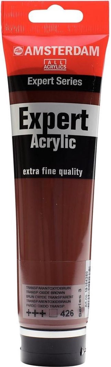 Deze zware acrylverf is sterk gepigmenteerd met artist quality pigmenten en biedt een ongeëvenaarde kleurintensiteit. Met deze professionele verf met hoge viscositeit zet je stevige verfstroken en paletmesstreken, breng je textuur aan en eindig je met een satijnen afwerking. Transparent Oxide Brown (426) is een transparante verf met uitstekende lichtechtheid (+++).