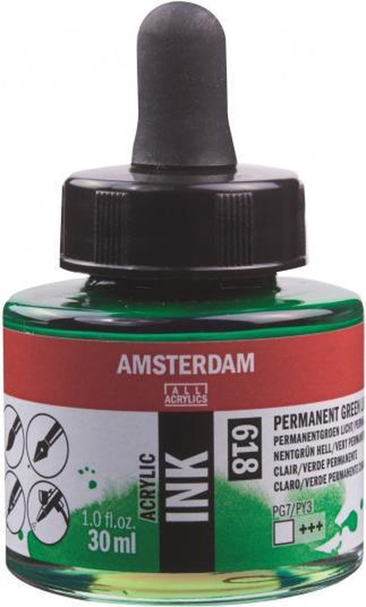 Amsterdam Acrylic Inkt Fles 30 ml Permanentgroen Licht 618