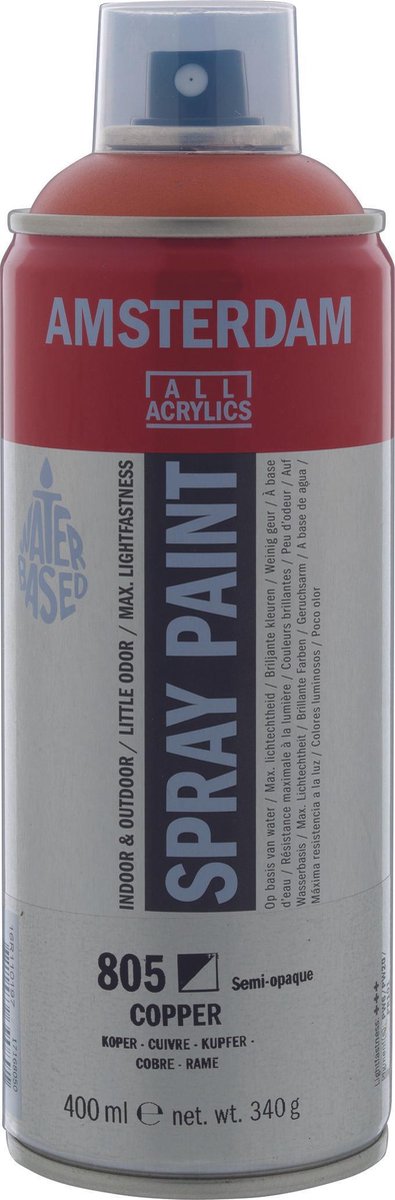 Verf op waterbasis, vrijwel geurloos. Zowel voor binnen- als buitengebruik, te gebruiken op verschillende ondergronden. Geschikt voor decoratie van meubels, potten, kunstwerken, etc. Na droging watervast. Briljante kleuren, goede lichtechtheid. Verschillende spuitdiktes mogelijk dankzij verschillende caps. Spuitbus van 400 ml.