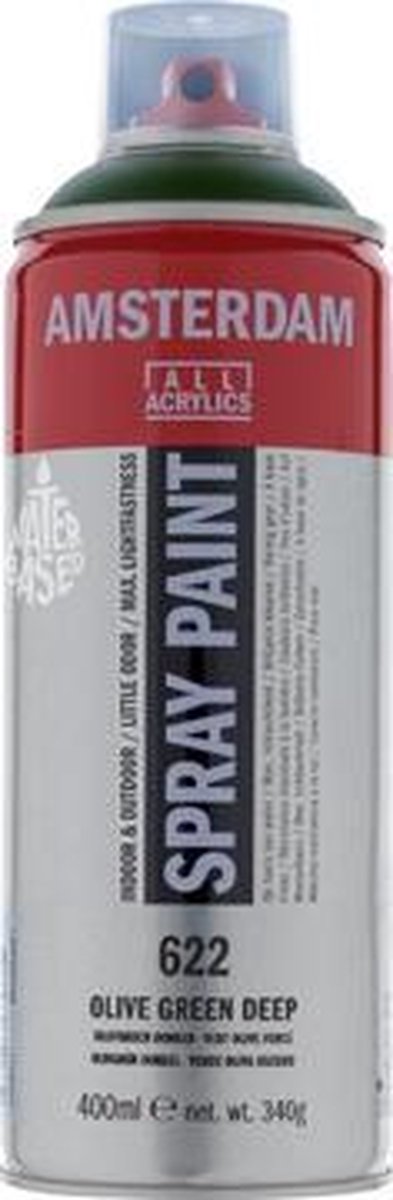 Verf op waterbasis vrijwel geurloos. Zowel voor binnen- als buitengebruik. Kan gemixt worden met Amsterdam verf en markers. Hoge lichtechtheidsgraad. Na droging watervast. Mix van dekkende en transparante kleuren. Spray van 400 ml.