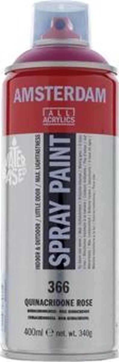 Verf op waterbasis vrijwel geurloos. Zowel voor binnen- als buitengebruik. Kan gemixt worden met Amsterdam verf en markers. Hoge lichtechtheidsgraad. Na droging watervast. Mix van dekkende en transparante kleuren. Spray van 400 ml.
