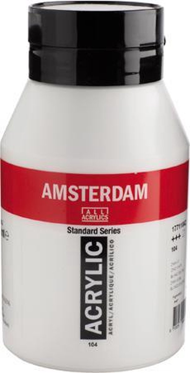 Grote pot van een liter halftransparante witte acrylverf uit de Standard Series van Amsterdam All Acrylics. Ideaal voor grootverbruikers! Royal Talens Artikel 17711042
