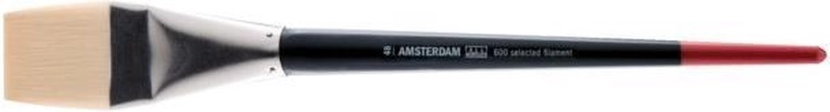 Penselen voor dikkere verfsoorten zoals olie- en acrylverf Haar: selected filament (polyestervezel) Vorm: plat (Gussow) Huls: plat, naadloos vernikkeld messing Steel: lang, gespoten in hoogglans zwart met rood Karakteristieken: Perfect voor gebruik met acrylverf Sterk, veerkrachtig en flexibel Selected synthetisch filament behoudt goed vorm tijdens gebruik