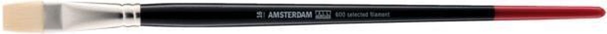 Penselen voor dikkere verfsoorten zoals olie- en acrylverf Haar: selected filament (polyestervezel) Vorm: plat (Gussow) Huls: plat, naadloos vernikkeld messing Steel: lang, gespoten in hoogglans zwart met rood Karakteristieken: Perfect voor gebruik met acrylverf Sterk, veerkrachtig en flexibel Selected synthetisch filament behoudt goed vorm tijdens gebruik