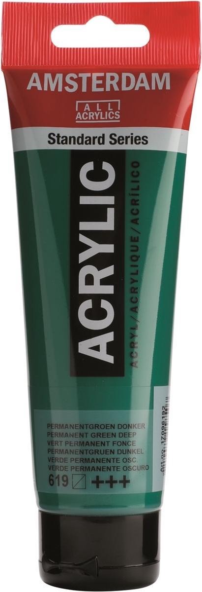 Tube van 120 ml acrylverf uit de Standard Series van Amsterdam All Acrylics. Een zeer hoge graad van lichtechtheid, dankzij het gebruik van zuivere en lichtechte pigmenten. Zelfs na tientallen jaren behouden werkstukken hun oorspronkelijke kleur. Een uitzonderlijk duurzame verffilm (het bindmiddel bestaat uit een 100% acrylaathars), voor een onvergankelijk resultaat. Alkalibestendig, en daardoor geschikt voor muurschilderingen. De verf is gemakkelijk met water te verdunnen. De droogtijd is kort: dunne verflagen drogen binnen een half uur. Door de specifieke receptuur is de verf vrijwel geurloos.