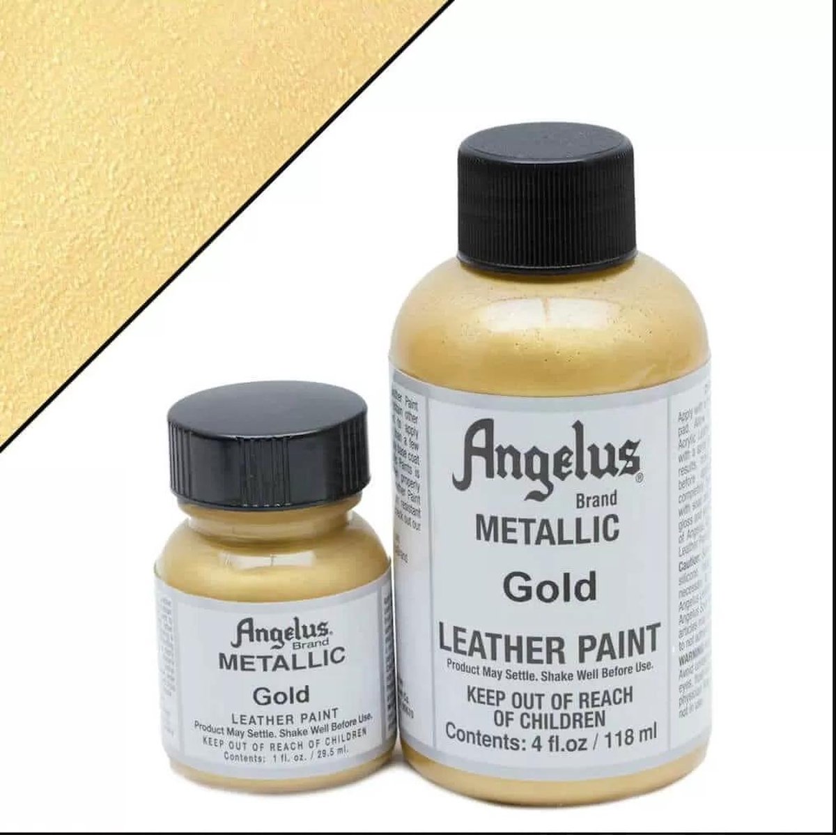 Angelus Leerverf is flexibele verf die speciaal gemaakt is voor het beschilderen van glad lederen oppervlakken van bijvoorbeeld uw tassen, jassen, meubels en schoenen. Door de flexibiliteit van de verf is het erg geschikt voor bewegende oppervlakken zoals dat van schoenen. De verf is watervast en goed te mengen in combinatie met andere kleuren leerverf. Angelus leer kleur Metallic Gold 118 ml / Angelus Leather Paint (4oz) Angelus acryl lederkleur is speciaal voor het verven van glad leer (geen suède!) ontwikkeld. Bij naleving van de gebruiksaanwijzing zal deze kleur op het leer plakken en niet aflopen. Ook andere stoffen kunnen onder overleg met toevoeging van andere producten worden geverfd. De leerverf van Angelus Brand staat wereldwijd bekend om zijn uitstekende kwaliteit en flexibiliteit. Het verf is speciaal gemaakt voor het verven van lederen oppervlakken maar wordt ook vaak gebruikt voor textiel in combinatie met 2-soft van Angelus. De verf is elastisch, watervast en flexibel.