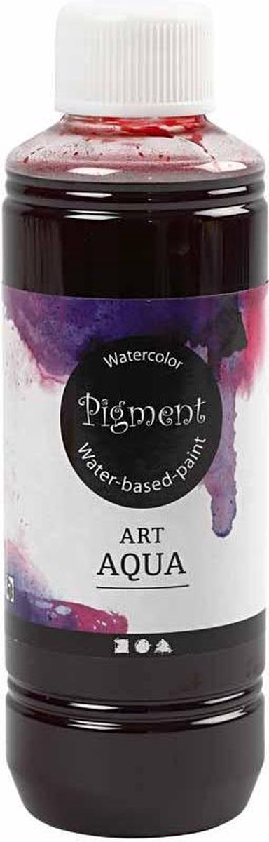 Vloeibare aquarelverf (250 ml) Art Aqua Pigment is een vloeibare, transparante aquarelverf van goede kwaliteit. De kleuren zijn onderling te mengen en kunnen verdund worden met water. Geschikt voor allerlei soorten kunst - kwasten schoon maken met water.