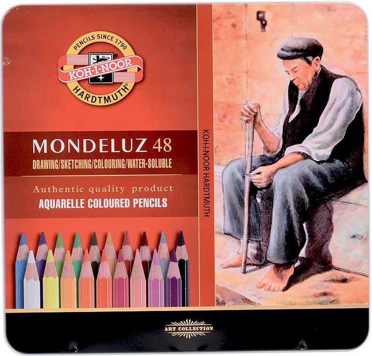 Aquarelpotloden in kunstenaarskwaliteit van het bekende merk Koh-I-Noor. De zachte stift maakt het mogelijk de kleuren gelijkmatig dekkend op te brengen. De kleuren zijn schitterend, intens en lichtecht. Bij droge verwerking bereikt u hetzelfde resultaat als met gewone kleurpotloden. Zodra water wordt aangebracht met een penseel of spons ontstaan vloeiende aquareltinten. Bij dit blik krijgt u een CR penseel om direct aan de slag te gaan.