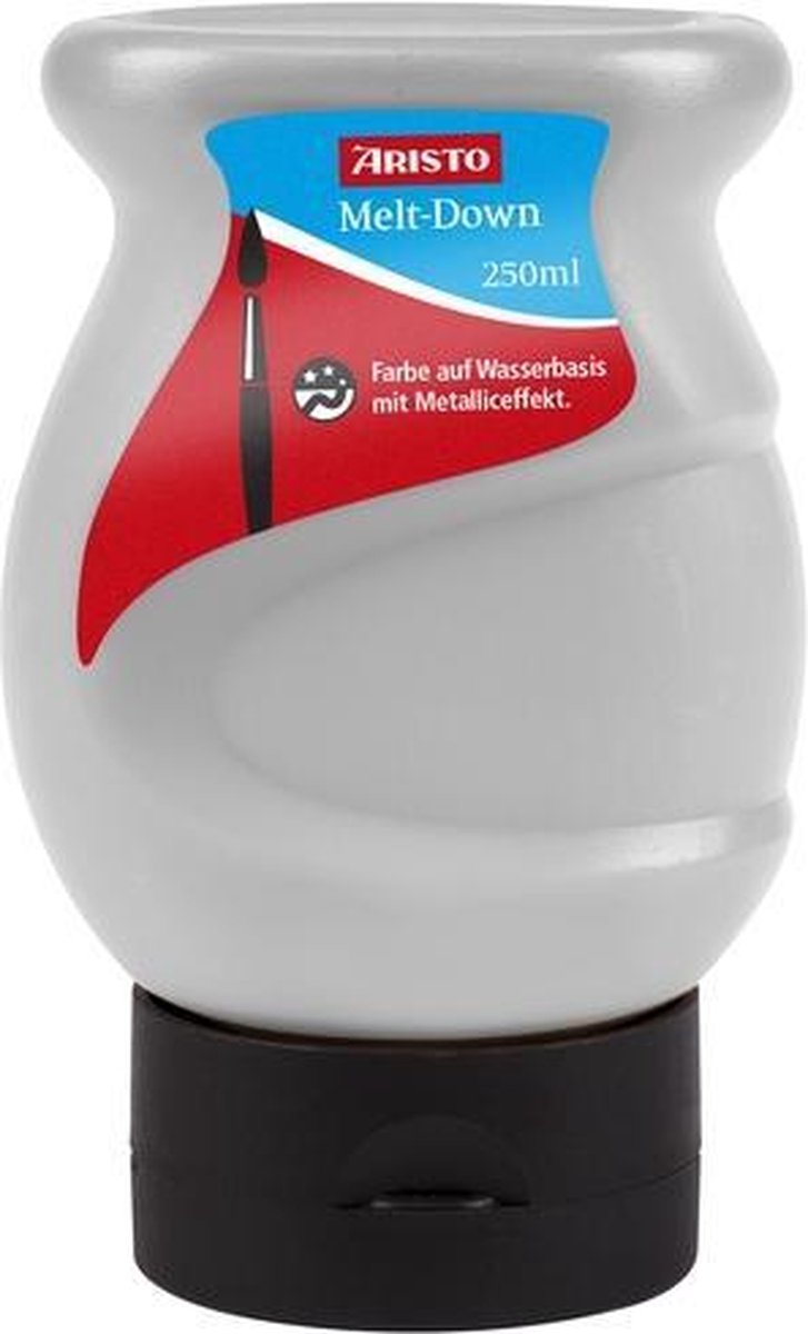 Meltdown verf is een metallic verf op waterbasis die een foto of een object mooi maakt. Het geeft een glanzend goud, zilver of brons effect. Met de toevoeging van fijne vulstoffen zoals zand of zaagsel wordt er een goed gecreëerd die te gebruiken is als boetseerklei. Inhoud: 250ml. Kleur: Metallic zilver.
