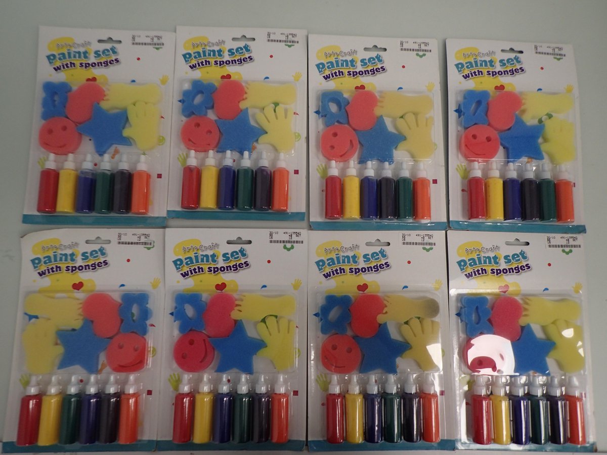 Art & Craft verf set met sponzen (6 stuks). Deze set bevat per paket 6 verschillende kleuren verf en 6 verschillende sponzen (zie afbeelding). Ideaal voor de kleine kunstenaar!