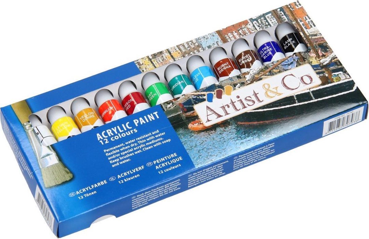 Met deze 12 verschillende kleuren acrylverf kun je je kind urenlang op een creatieve manier bezighouden. Geschikt voor kinderen vanaf 3 jaar.