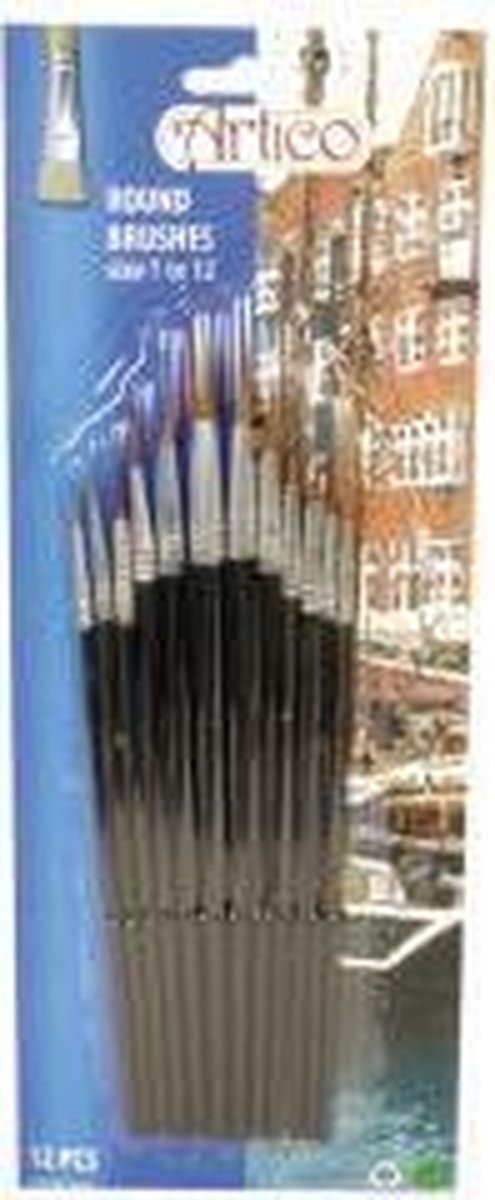 12-delige set ronde penselen. Maat 1 t/m 12.