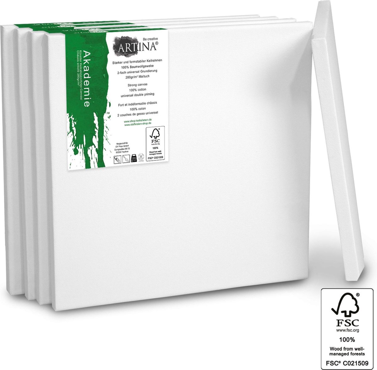 Artina 5-Set schildersdoeken canvas in academie kwaliteit – Schildersdoek wit - canvas paneel 15x15 cm