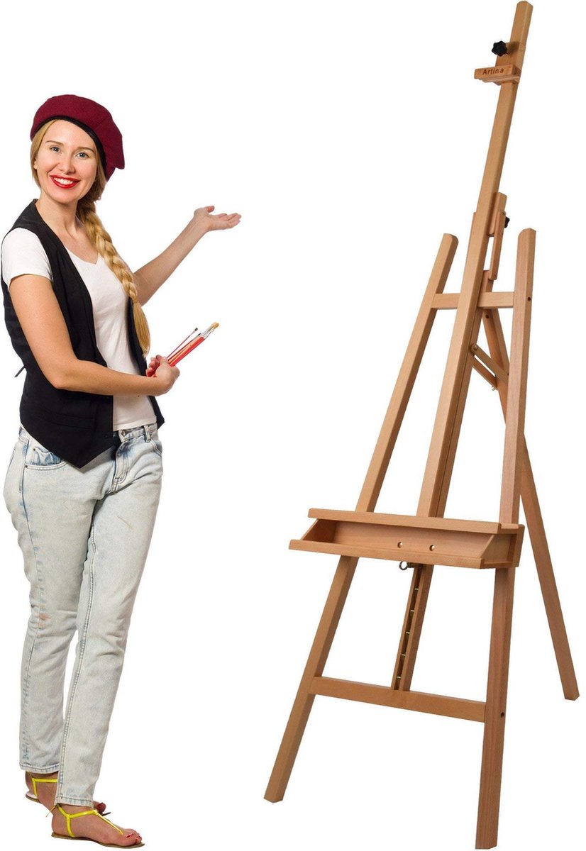 Laat je creativiteit de vrije loop en schilder in de toekomst op de professionele academie ezel van Barcelona van Artina. De ezel is geschikt voor zowel de hobbyisten als voor ambitieuze kunstenaars. De ezel is gemaakt van massief geolied beukenhout en is gedeeltelijk voor gemonteerd terwijl makkelijk te monteren. De driepoot ezel biedt stabiliteit en goede werking voor Canvassen tot een hoogte van 120 cm. Door de individuele verstelmogelijkheden in hoogte en helling biedt de ezel een groot schildercomfort. - De Artina schildersezel van beukenhout is perfect voor uw behoeften als kunstenaar. Hij heeft een dubbele steun van 56x11 cm en is extreem stabiel door zijn driepoot voeten. - Het houten schilder ezel is ca. 225x66 cm (HxB), is gemakkelijk op te vouwen en daardoor zeer plaats besparend wanneer het niet in gebruik is. - De ezel is gemaakt van massief beukenhout en is het meest geschikt voor schilderdoeken tot een maximale grootte van 120 cm. Daarom is het niet alleen geschikt om