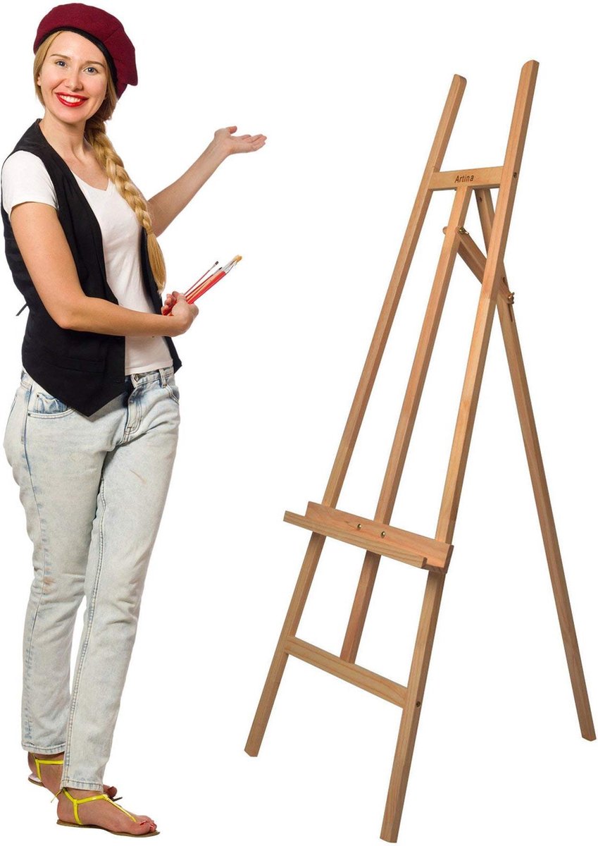 De ezel Sevilla is gemaakt van massief beukenhout en is ideaal voor beginners en amateurkunstenaars. Het is gemaakt voor grote en kleine canvassen met een afmeting tot 150 x 100 cm. De studio-ezel kan in hoogte versteld worden door middel van een schroefverbinding en biedt een groot schildercomfort, ideaal voor kinderen en volwassenen. Producteigenschappen: - Model: Sevilla - Afmetingen: ca. 61cm x 67cm x 152cm - Gewicht: ca. 6,0kg - Materiaal: Beukenhout - Beeldhoogte max.: ca. 120cm - Hoogteverstelling: door schroefbevestiging