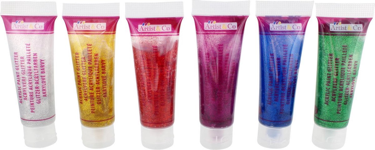 Kies de juiste kleuren glitters voor de mooiste creaties en leef je uit op canvas, papier of ander materiaal. Watervaste verf 6 Kleuren Inclusief verfpenselenn zo kun je meteen begiunnen met met je eigen creaties.
