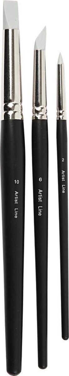 Spits penseel gemaakt van silicone rubber, die gebruikt kunnen worden voor verf en lijmen. Makkelijk schoon te maken Set bestaat uit: 1x rond (2mm). 1x schuin (6mm), 1x plat (10 mm).Spitse penselen gemaakt van silicone rubber, die gebruikt kunnen worden voor verf en lijmen. Makkelijk schoon te maken.