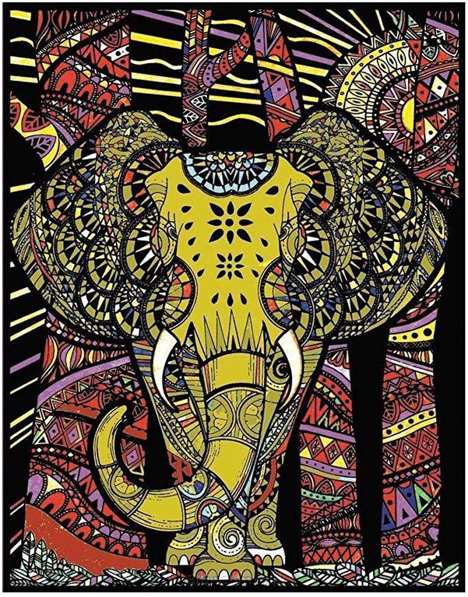 Artistieke olifant Colorvelvet kleurpakket inclusief 12 stiften. Wat is Colorvelvet? Met Colorvelvet maak je de mooiste kunstwerken maar niet zoals de standaard kleurplaten. De tekeningen zijn gemaakt van een speciaal absorberend karton, gedeeltelijk bedekt met een 1mm dikke zwarte laag fluweel waardoor je een duidelijke scheiding krijgt met hetgeen wat je moet inkleuren. Behalve dat dit stuk fluweel ervoor zorgt dat je de witte vlakken makkelijk kunt inkleuren komt het zwarte fluweel naar voren wat een heel chique geheel geeft op je Colorvelvet kleurplaat. Deze tekeningen zijn eenvoudig, dit maakt Colorvelvet leuk en leerzaam waardoor dit ideaal is voor alle leeftijden vanaf 3 jaar en ouder. Met colorvelvet hebben kinderen plezier en leren ze tegelijkertijd, waardoor ze kleurrijke tekeningen maken waarmee ze ook hun slaapkamer kunnen versieren. Maar ook voor volwassenen is Colorvelvet zeer geschikt om lekker creatief bezig te zijn. De tekeningen kan je op allerlei verschillende