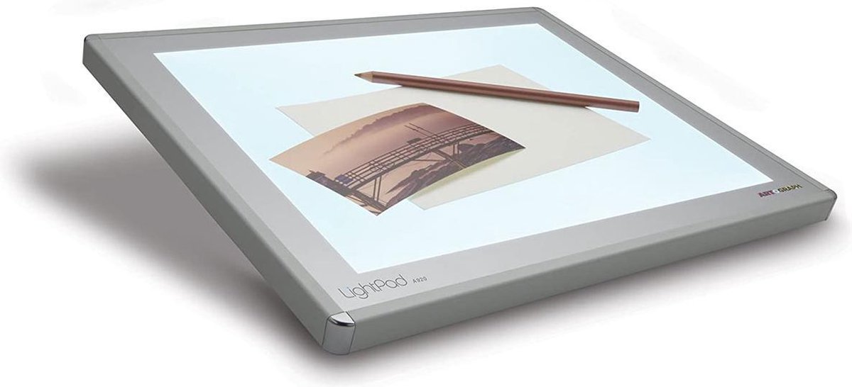 Artograph 930LX LightPad Deze Artograph 930LX LightPad lichtbak heeft een verlicht oppervlak van 305 x 229mm. De LightPad LX-serie lichtbak van Artograph is gemaakt in de VS met een sterk aluminium frame en een dubbellaags acryloppervlak. De helderheid is instelbaar van 500 tot 5000 lux met een enkele capacitieve aanraakbediening die ook dienst doet als aan / uit-schakelaar. Zoek de helderheid die u nodig heeft en de LightPad LX slaat de instelling op voor de volgende keer dat u uw lichtbak gebruikt. LED-lampen met een lange levensduur hoeven nooit te worden vervangen. UV-vrij licht is veilig voor ogen en archiefdocumenten. Bevat 4 optionele rubberen voetjes, een beschermende opberghoes, voedingsadapter en gebruikershandleiding. Kenmerken – LightPad 930 LX lichtbak met een verlicht oppervlak van 9 bij 12 inch en instelbare helderheid van 500 lux tot superhelder 5000 lux om door de dikste oppervlakken te schijnen – Onderhoudsvrije led-lampen hoeven nooit te worden vervangen, koel