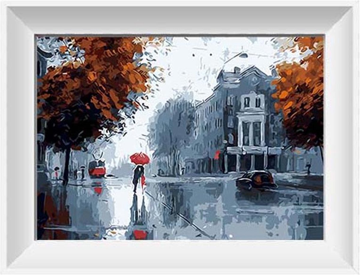 Artstudioclub® Schilderen op nummer volwassenen 40x50 cm stel op straat met paraplu