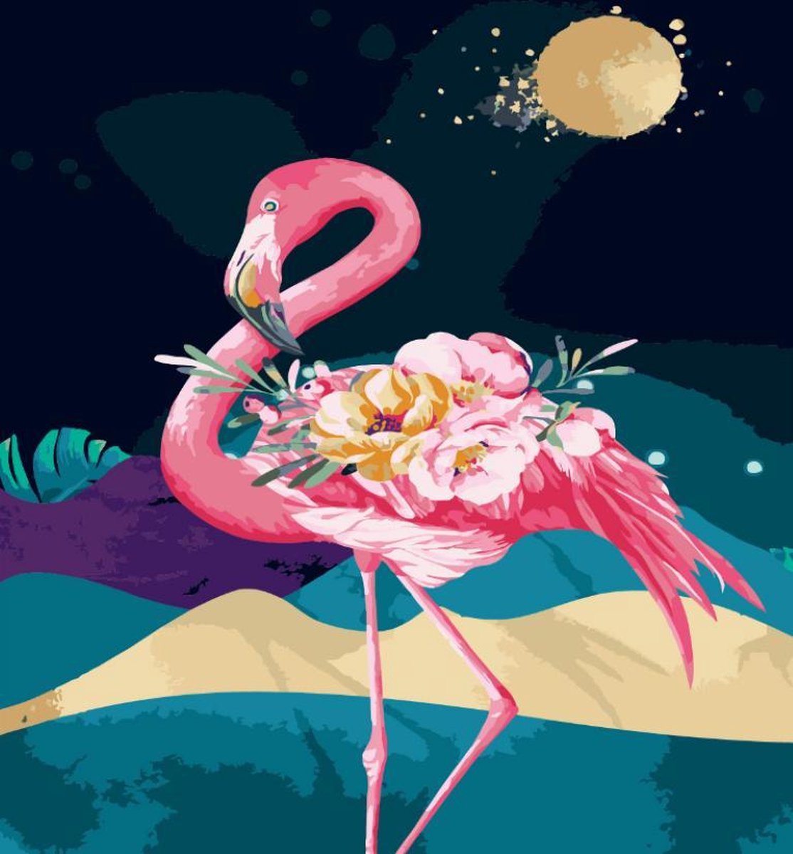Artstudioclub® Schilderen op nummer volwassenen 40x50cm volwassenen Flamingo bij nacht