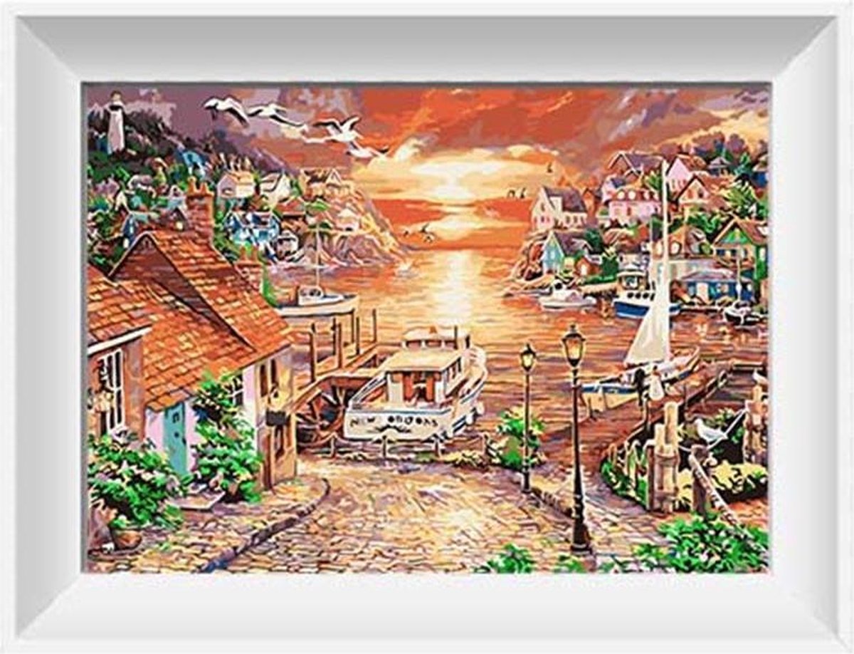 Artstudioclub® schilderen op nummer volwassenen dorp aan zee bij zonsondergang Zonder lijst