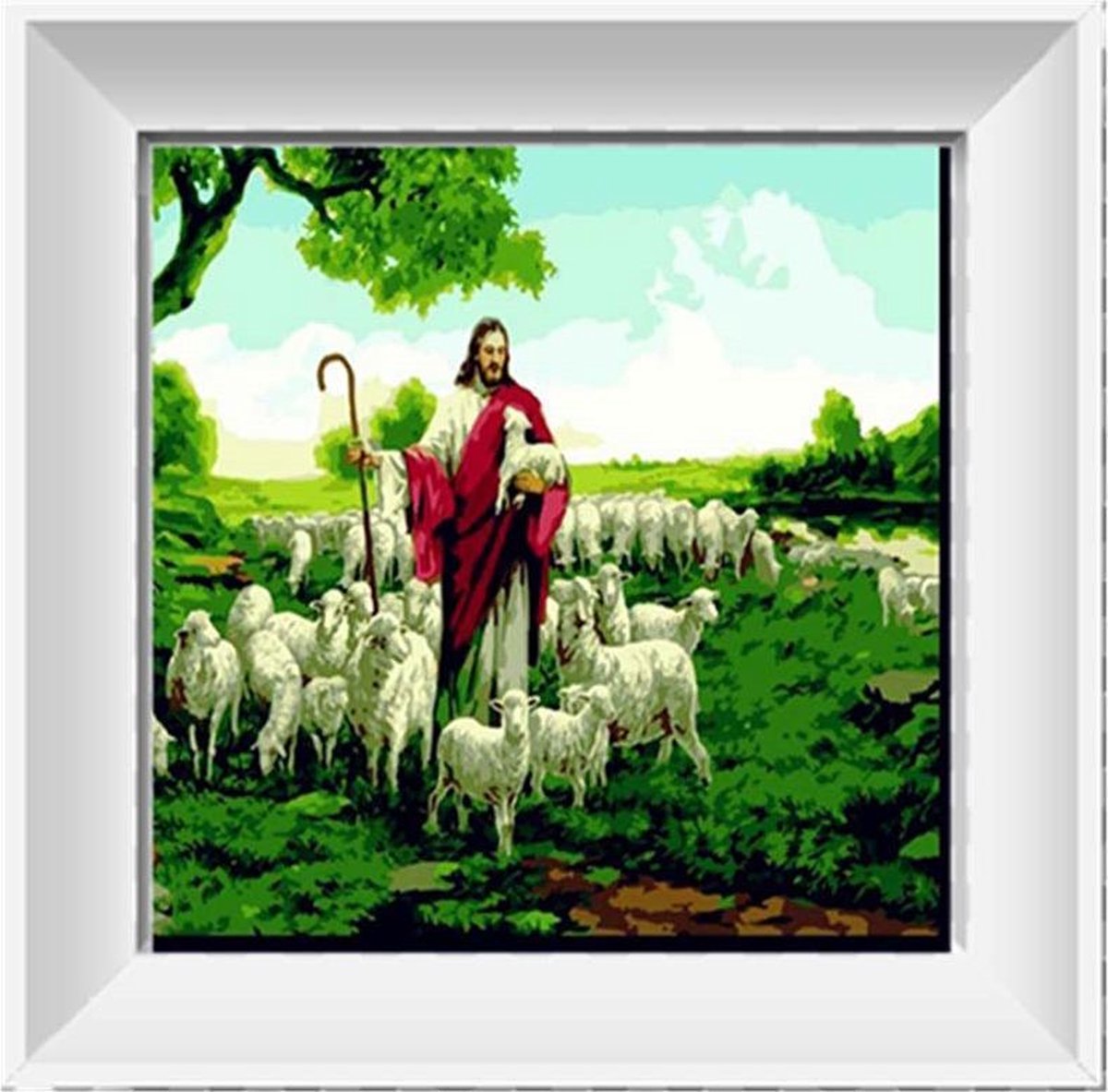 Artstudioclub® Schilderen op nummer volwassenen jezus met een kudde schapen Zonder lijst