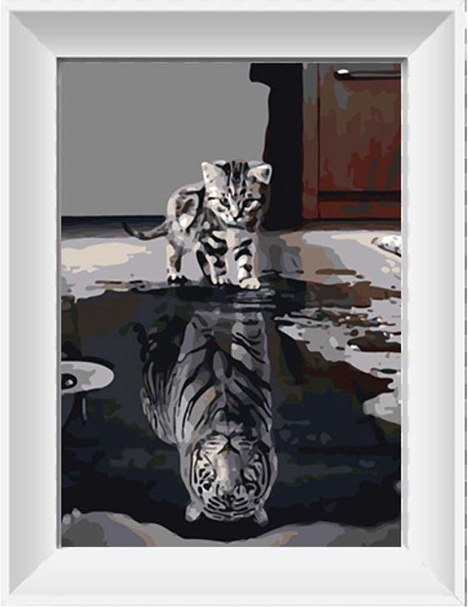 Artstudioclub® schilderen op nummer volwassenen kat met tijger reflectie 40x50cm -Zonder lijst