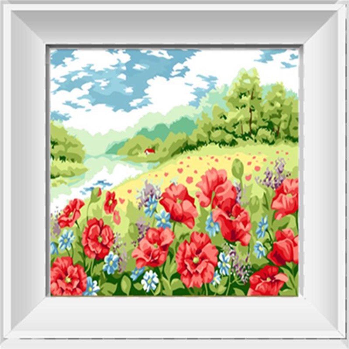 Artstudioclub® schilderen op nummer volwassenen rode bloemen in veld Zonder lijst