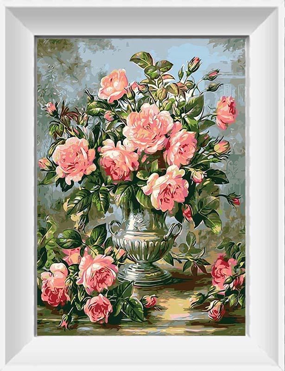 Artstudioclub® Schilderen op nummer volwassenen roze bloemen in vaas Zonder lijst