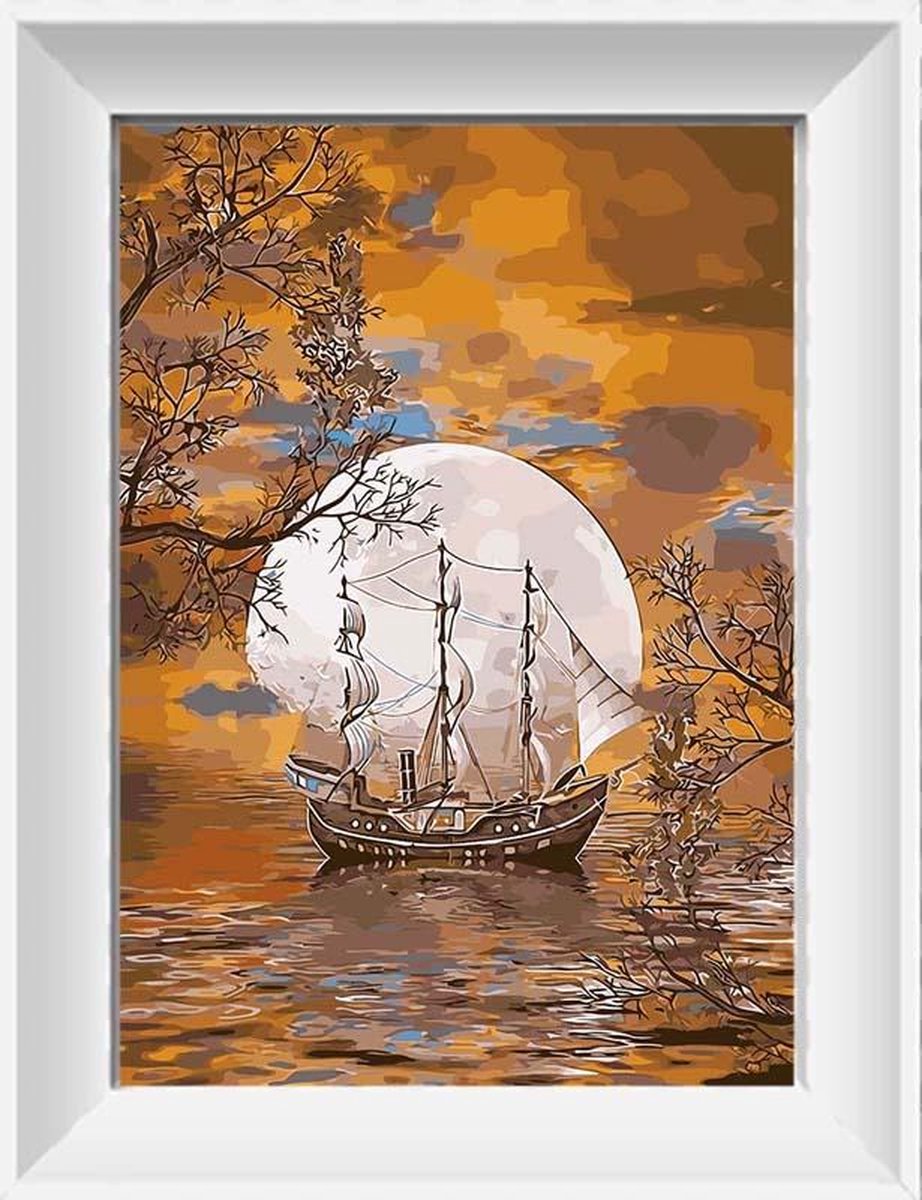 Artstudioclub® schilderen op nummer volwassenen-schip en maan Zonder lijst