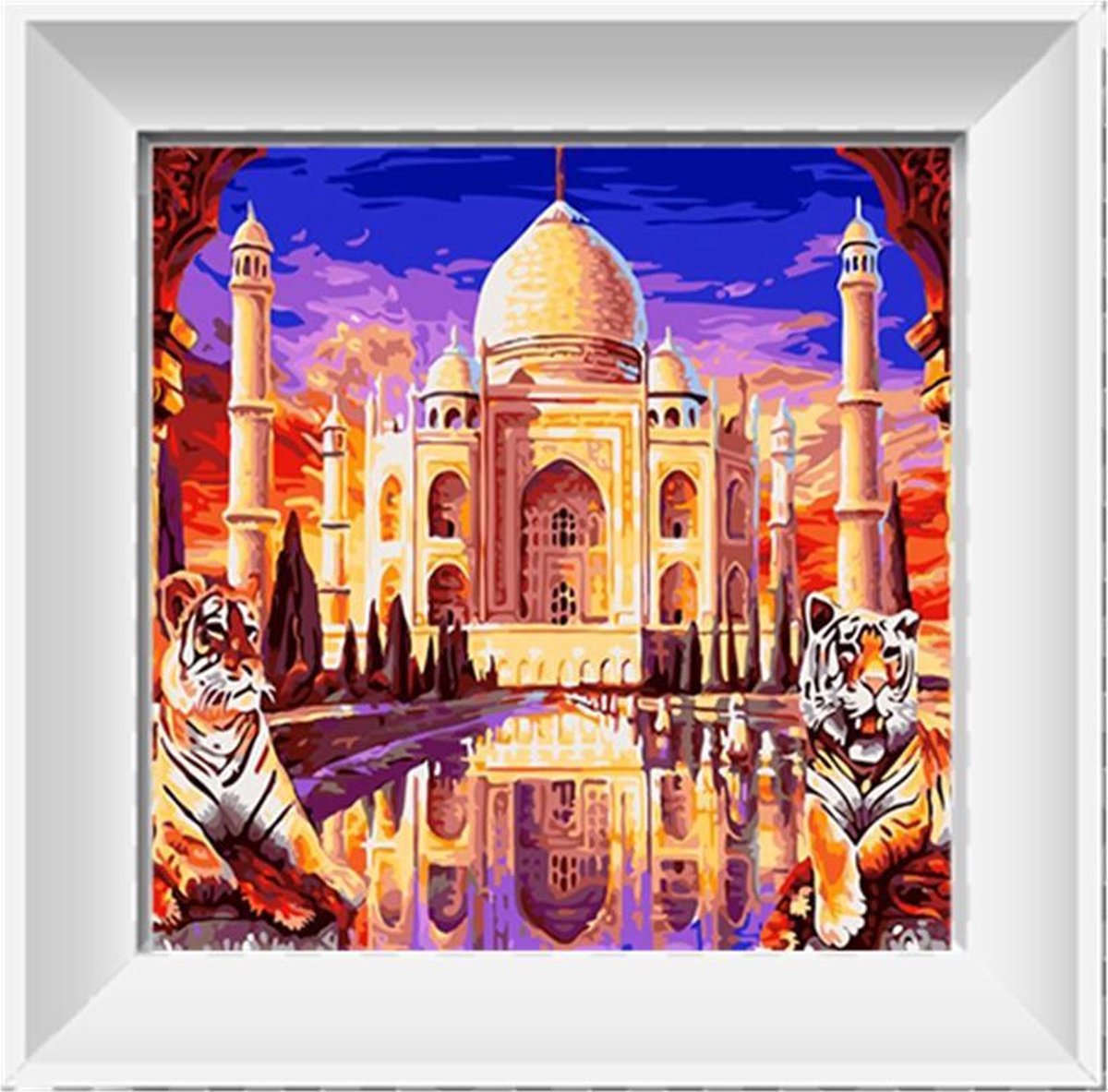Artstudioclub® Schilderen op nummer volwassenen taj mahal en twee tijgers Zonder lijst