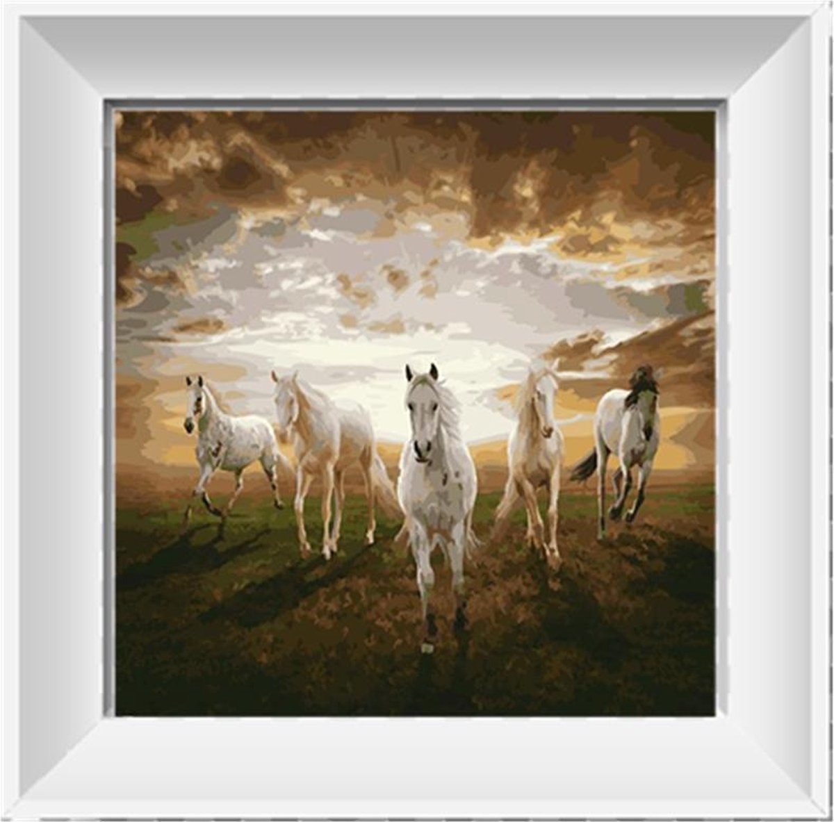 Artstudioclub® Schilderen op nummer volwassenen vijf witte paarden die Zonder lijst naar je toe rennen