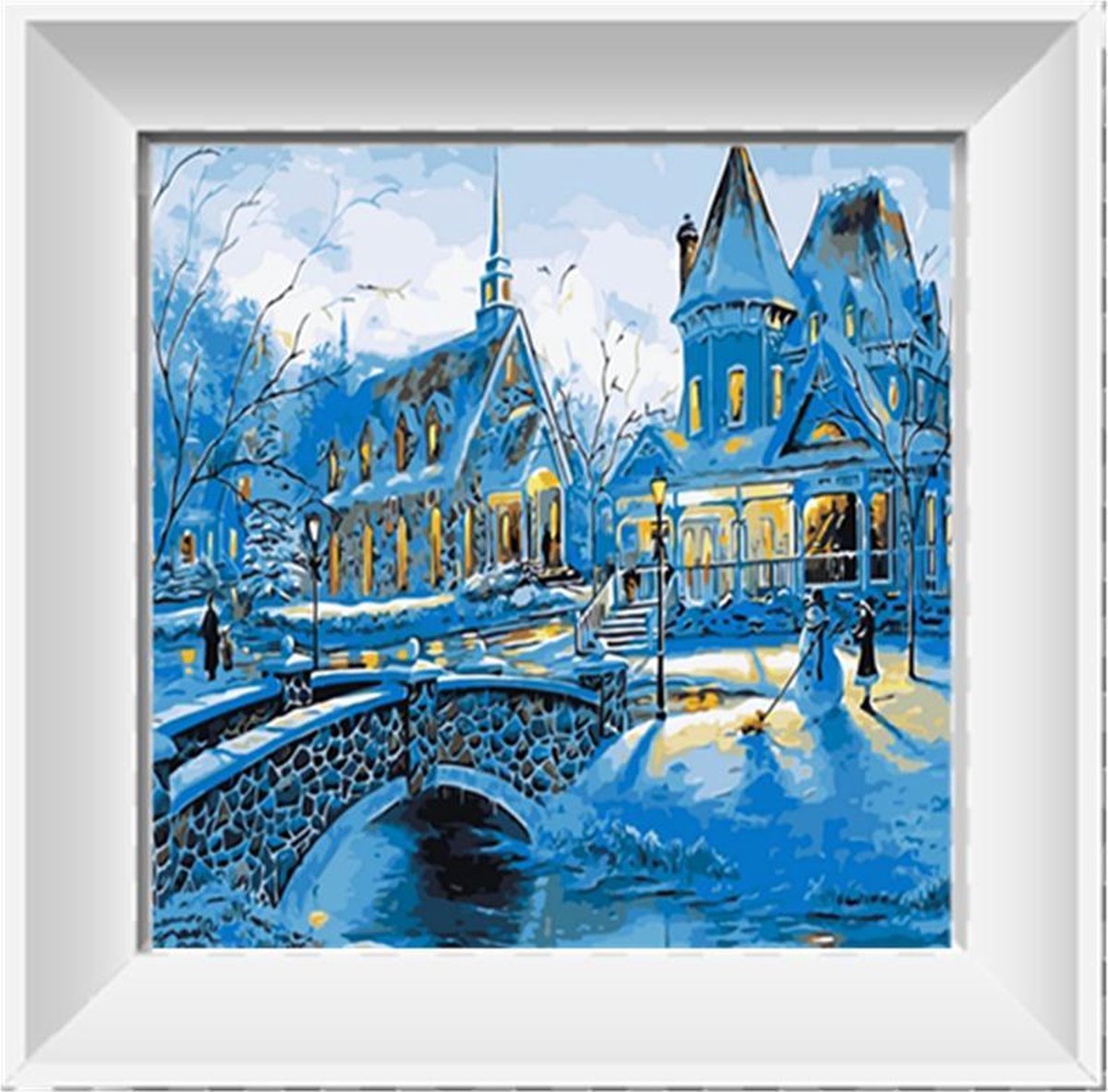 Artstudioclub® schilderen op nummer volwassenen villa en kerk in de winter Zonder lijst