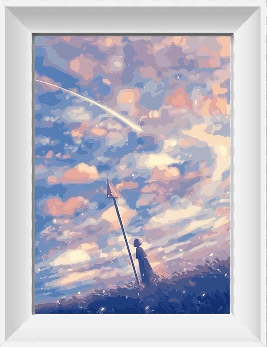 Artstudioclub® Schilderen op nummer volwassenenpersoon die bij teken staat en naar de hemel kijkt 40x50 Zonder lijst