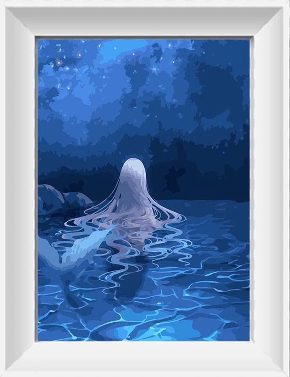 Artstudioclub® Schilderen op nummer volwassenenvrouw in het zwembad 's nachts met blond haar, 40x50 Zonder lijst