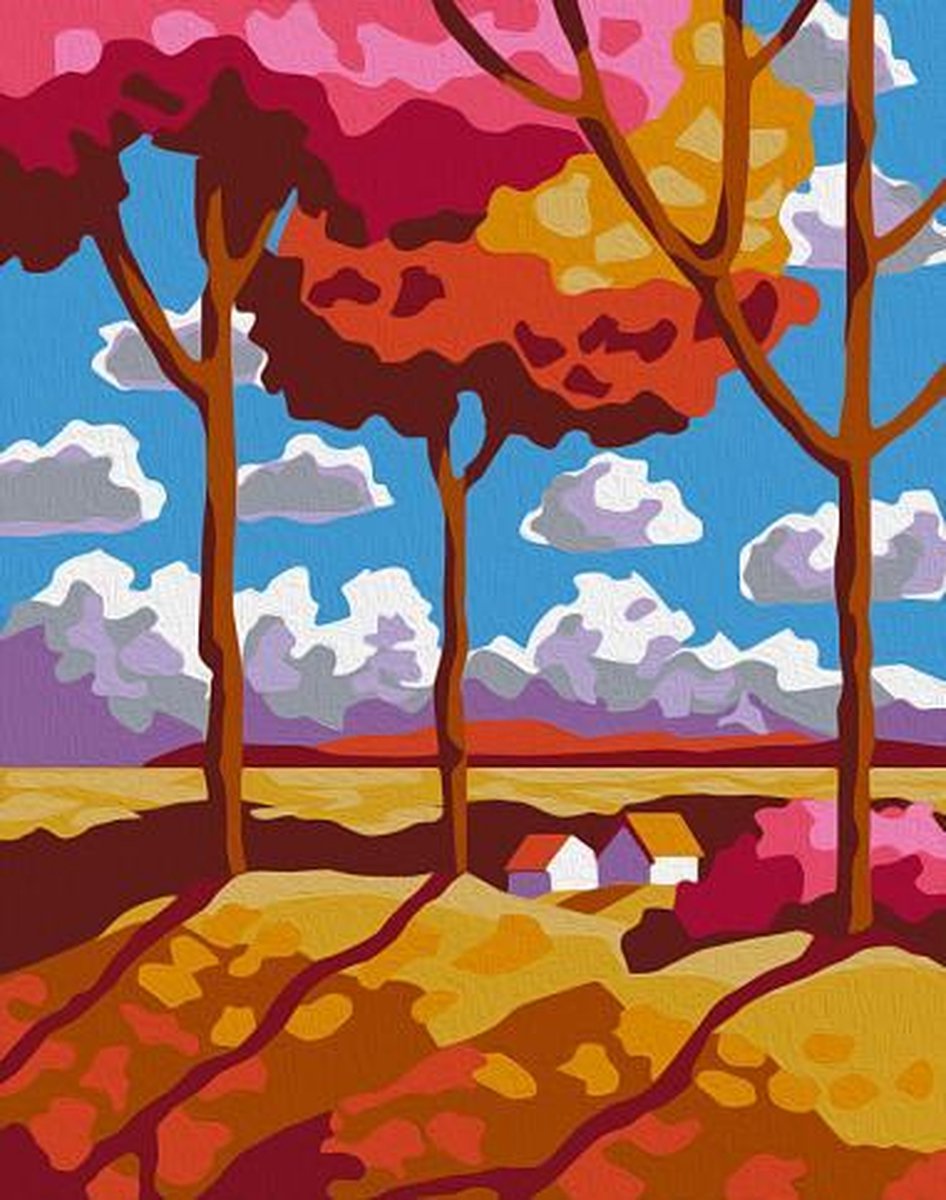 Complete set om een herfst landschap te schilderen op nummer op canvas board. Het pakket bevat alle benodigde kleuren acrylverf, genummerd canvas board, penseel en instructies met handige tips. Tevens veranderd de doos in een handige mini ezel.