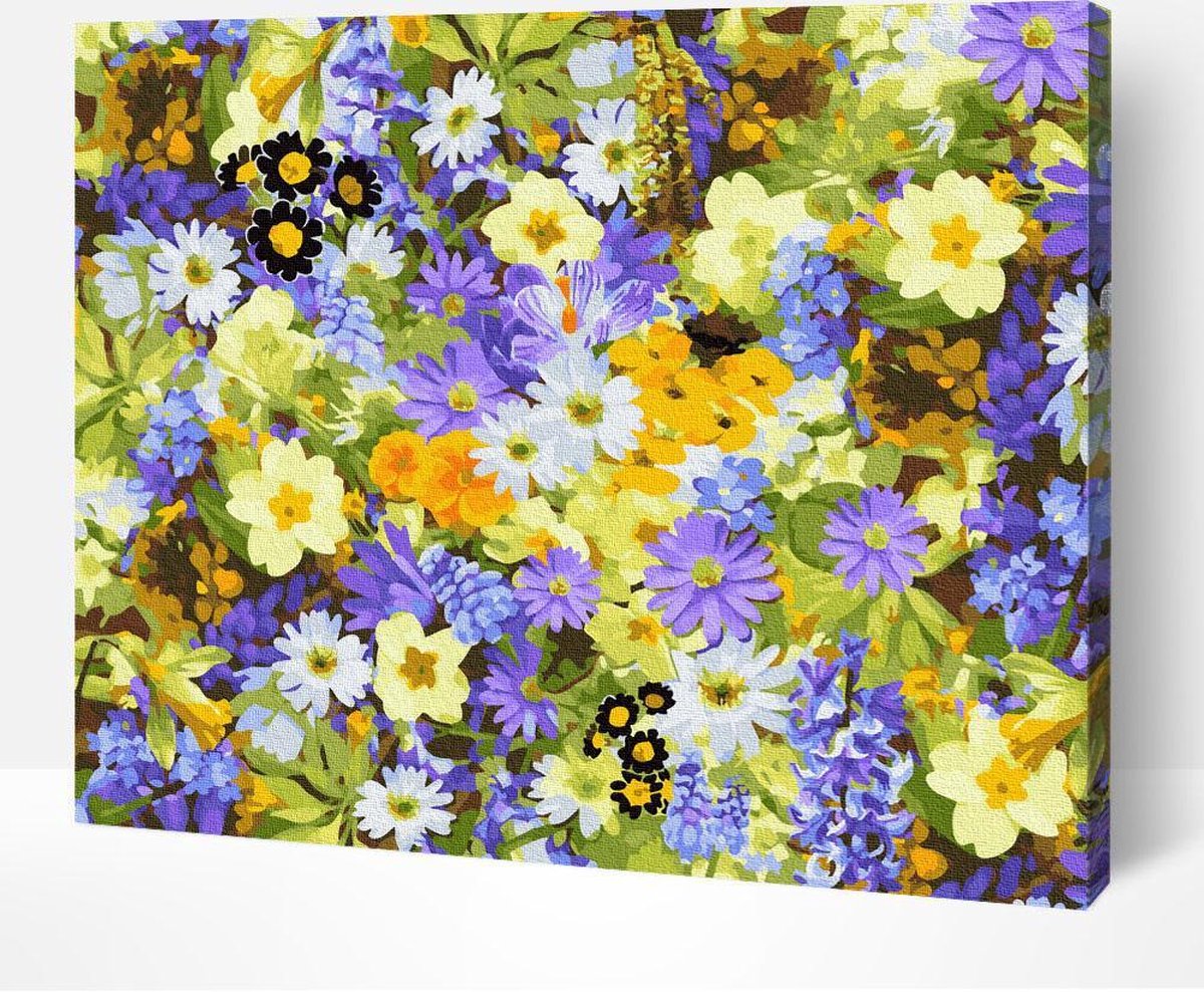 Arty Bee® Schilderen Op Nummer Volwassenen - Paint By Number - Hobby Pakket op Frame met Vernis - Kleurrijke Bloemen 50x40cm