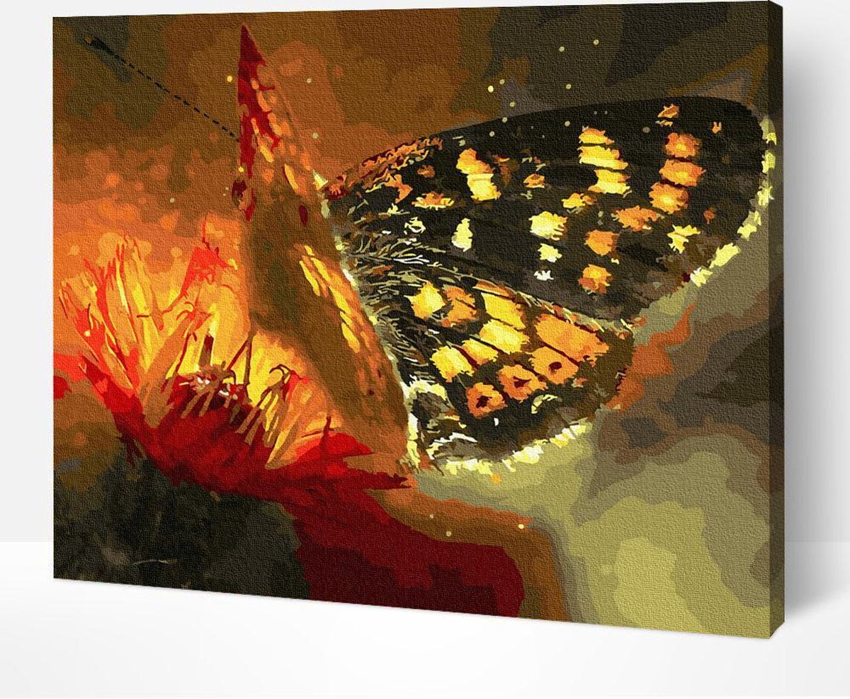 Arty Bee® Schilderen Op Nummer Volwassenen - Paint By Number - Hobby Pakket op Frame met Vernis - Vlinder op Bloem 50x40cm