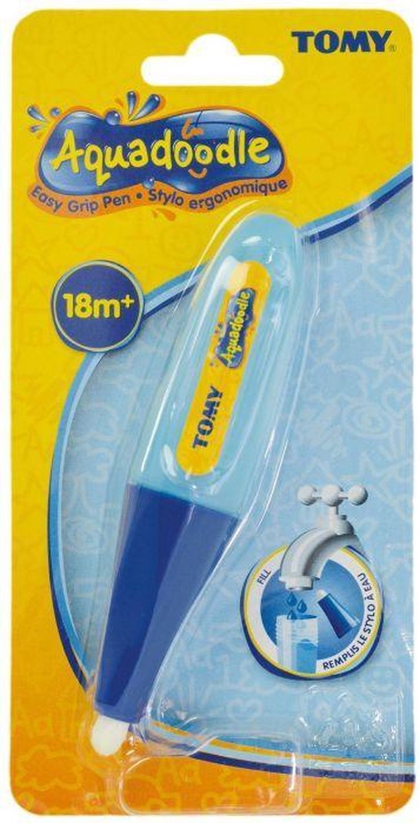 The Aquadoodle Easy Grip Pen lets lots more busy hands enjoy hours of mess-free colouring and drawing fun. Expertly designed for little hands to use! Unscrew the nib and fill the pen with water, run the nib over the Aquadoodle mat (sold separately) and see your lines and designs appear like magic! No mess, no ink, no stains – once the water has dried, drawings fade away, ready to start all over again! Includes one easy grip pen. Suitable for 18 months and over