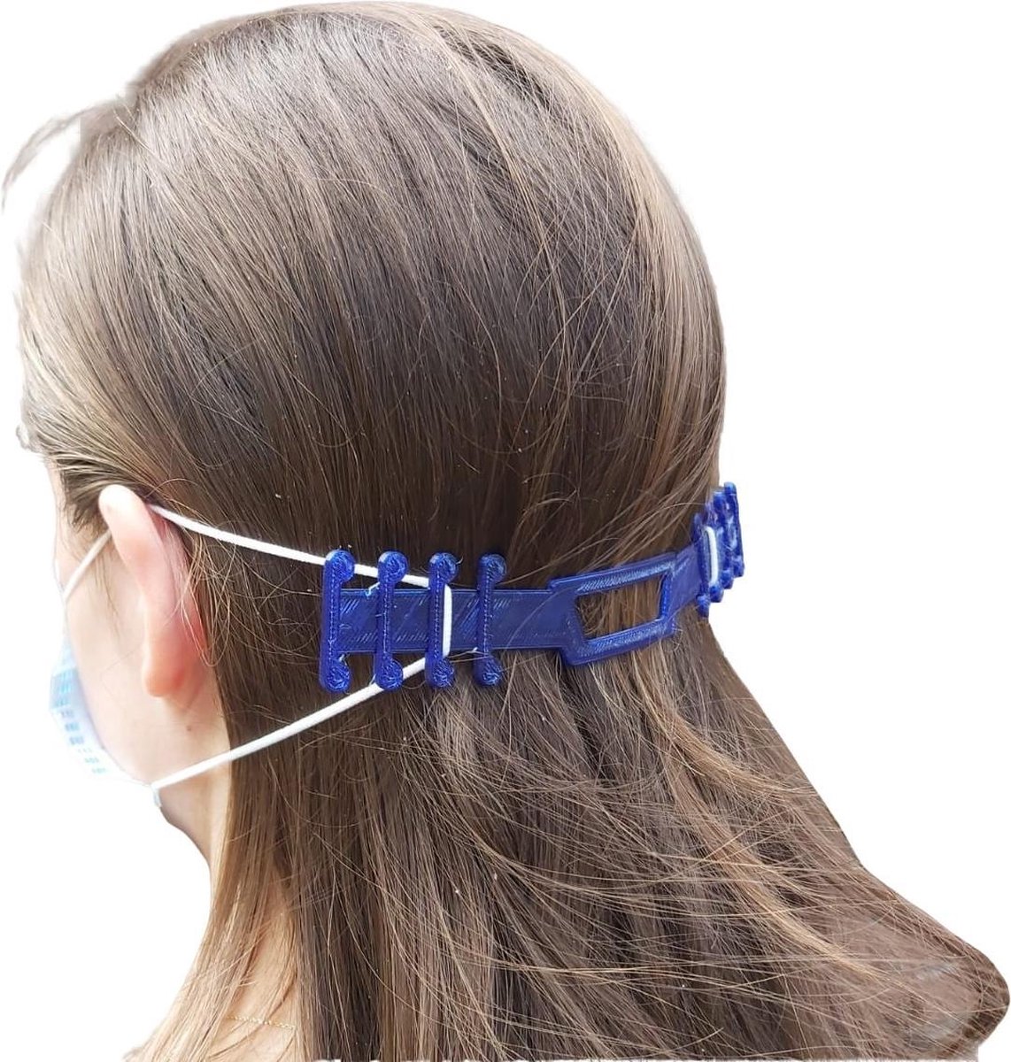 Mondkapjes houder blauw (PET). Handige tool voor het beter laten functioneren van uw mondkapje. Voorkomt het slap worden van de elastieken. Zorgt er voor dat uw mondkapje de gehele dag strak langs uw gezicht blijft zitten. Heeft meerdere standen afhankelijk van de grote van de schedel. Zorgt voor een betere sluiting dus een betere bescherming. De houder is gemaakt van plastic (PET). Niet geschikt voor kinderen en enkel te gebruiken voor het goed laten zitten van het mondkapje. Geen pijnlijke dagen meer door het dragen van uw mondkapje. Niet continu hoeven voelen hoe uw mondkapje zit. De houder is ontworpen om deze problemen te voorkomen. Handig voor als u in de zorgsector werkt en vaak een mondkapje moet dragen. Niet bedoeld voor kinderen. Ontworpen onder Creactive Common Licentie. Maker: https://www.thingiverse.com/thing:4249113 Alle credits naar de maker.