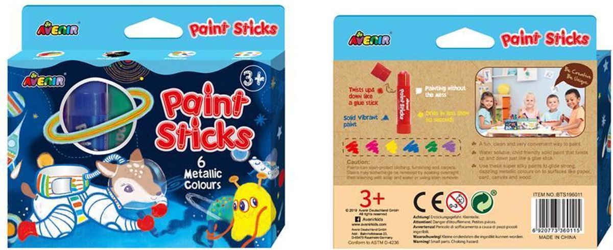 Avenir Paint Sticks: 6 metallic kleuren, in doos 14.8x2.4cm, 3+