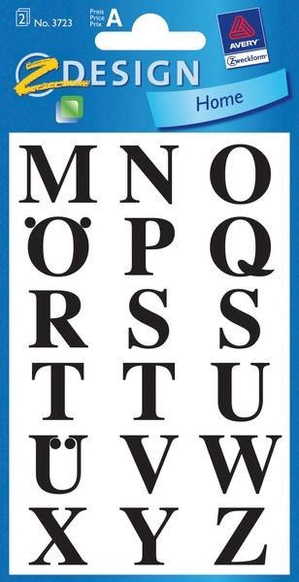 Verschillende letters. Voor het aanbrengen van teksten op kantoor, thuis of op school. Formaat vel 76x120 mm. Aantal vel 2. Letters 15,5 mm zwart.