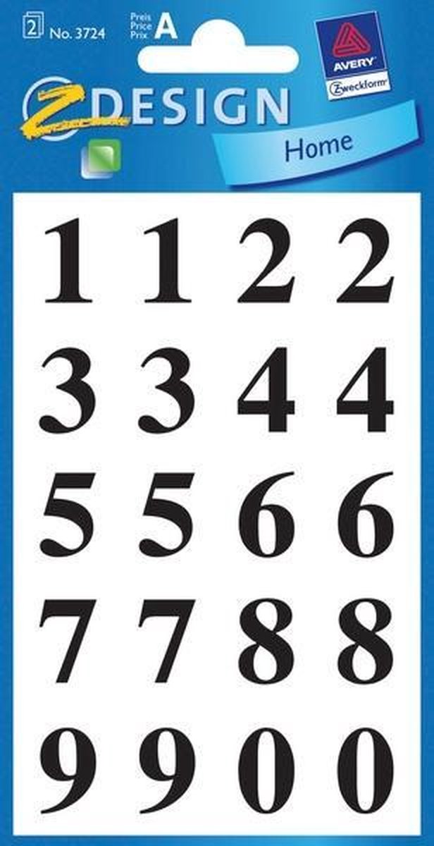Verschillende cijfers. Voor het aanbrengen van cijfers op kantoor, thuis of op school. Formaat vel 76x120 mm. Aantal vel 2. Cijfers 15,5 mm zwart.