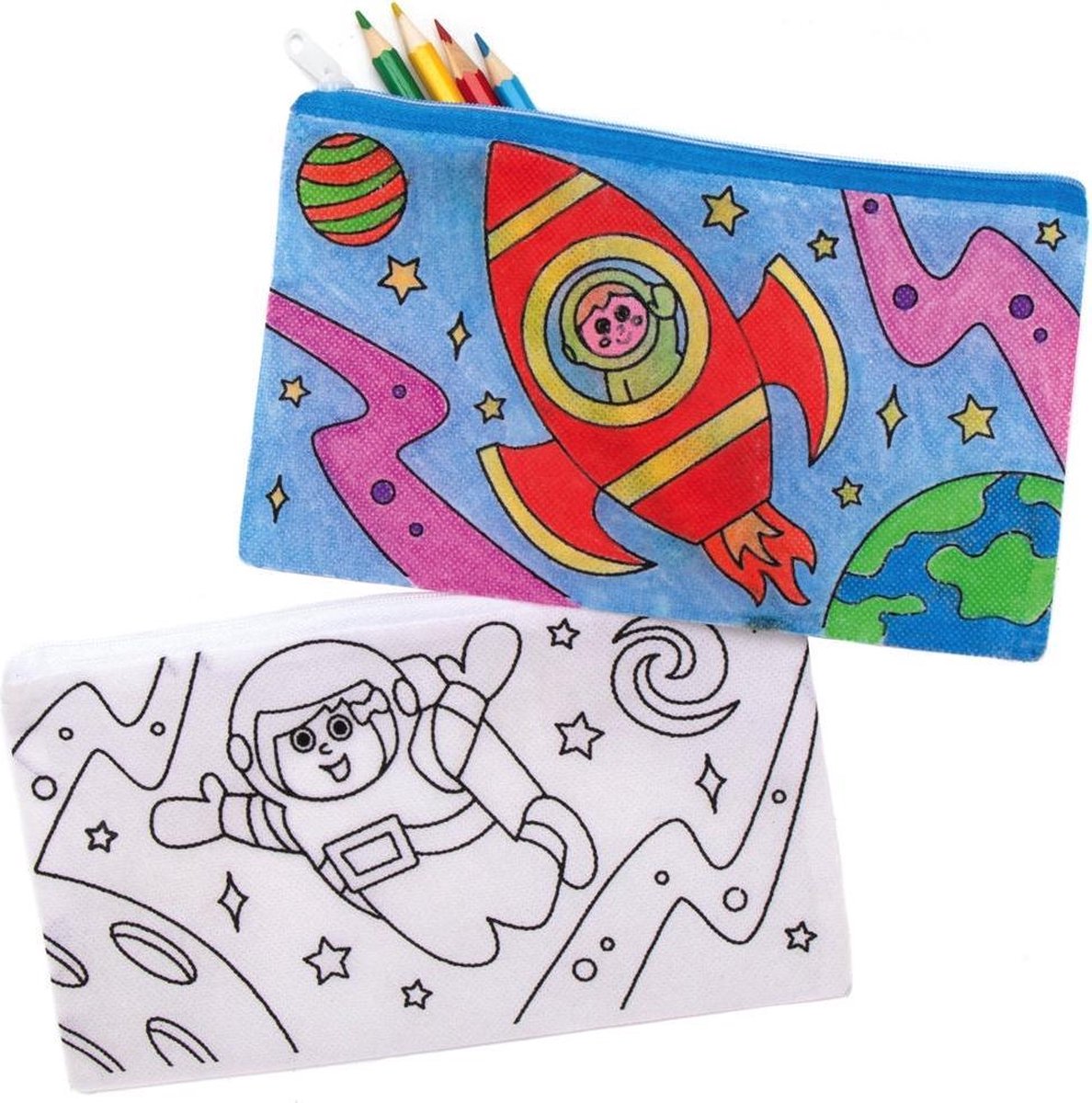 Tasjes om te versieren: Elke zeedieren etui is klaar om versierd te worden met jouw creativiteit, dus pak je stiften en verf (niet inbegrepen) en verras jezelf met je kunsten. Etuis: Deze kleine tasjes kunnen worden gebruikt voor knutselen, pennenmapjes, portemonnee, make-up tasjes of als duurzaam cadeautasje. Ontwerp je eigen: Onze sets zijn geweldig om zelf te ontwerpen en te versieren op kinderfeestjes, in het klaslokaal of gewoon thuis. Bevordert concentratie door te focussen op het eigen ontwerp. In deze verpakking: Onze maak je eigen heelhal etui voor kinderen bevat 4 ontwerpen inclusief ruimteschepen en astronaut. Elk etui meet 21,5 x 12 cm (8,4 x 4,7 inch) en is gemaakt van stofVeiligheid is het belangrijkst: Alle Baker ross speelgoed en kunstelspullen voldoen aan de strenge veiligheidsvoorschriften van de Europese Unie en dragen het CE-keurmerk. Baker Ross maakt producten voor verschillende leeftijden en laat het aan de klanten over om te beoordelen of het kind oud genoeg is v