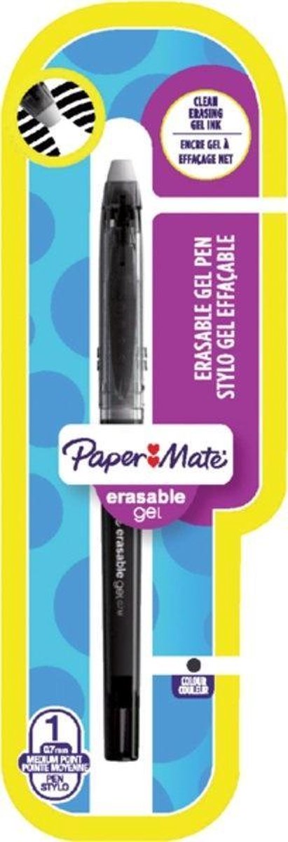 De nieuwe Paper Mate Erasable is een uitgumbare gelpen. Hij gebruikt gel inkt die makkelijk te verwijderen is en geen enkel spoor achterlaat. Geniet van een soepele schrijfervaring en een modern uiterlijk. Navulbaar.