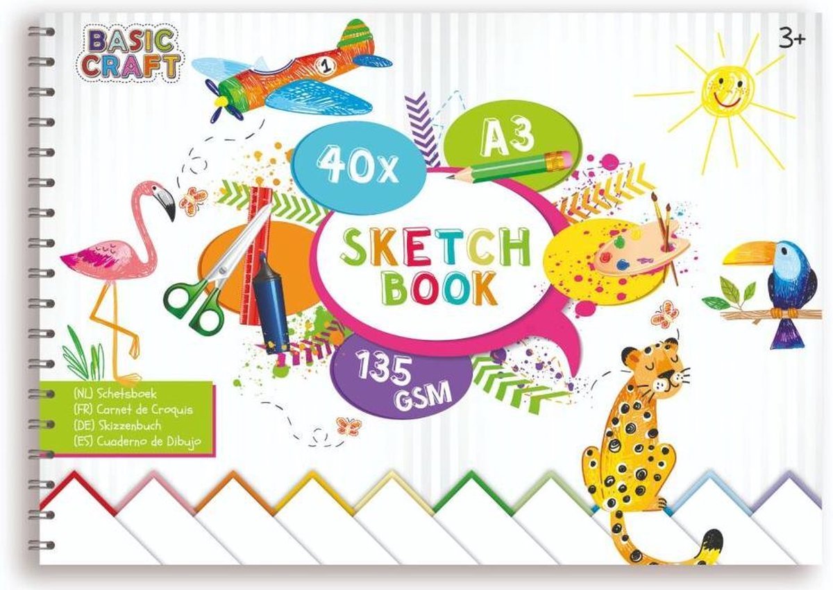 Basic Craft A3 schetsboek met 145 grams papier, 40 bladen. Geschikt voor kinderen vanaf 3 jaar.