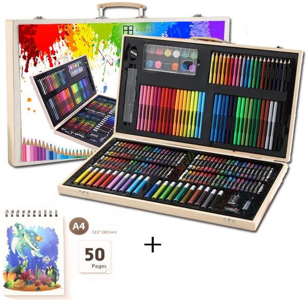BB SELECT® Tekenkoffer inclusief schetsboek 50 vellen A4| 181-delig |Kleurenkoffer|Tekendoos| voor kinderen en volwassenen De kleuren kunnen iets afwijken