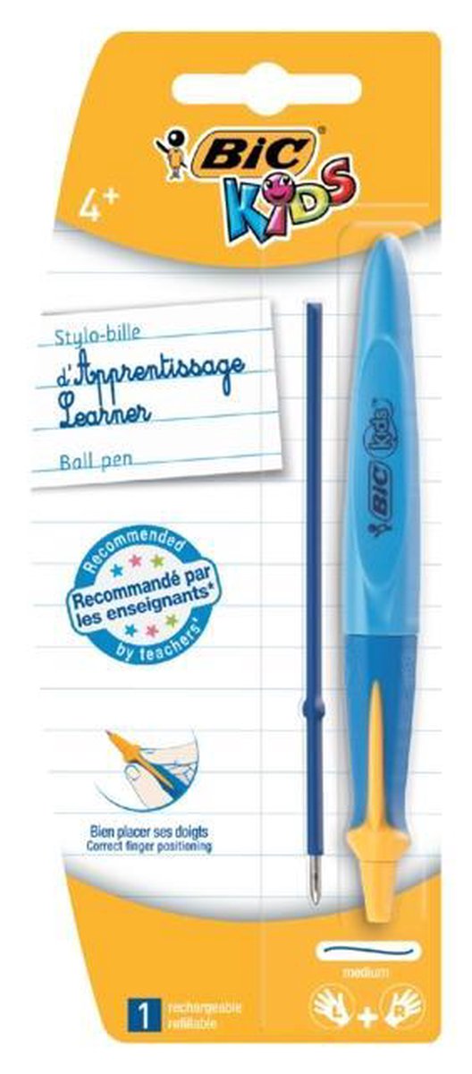 Schrijfbreedte 04 mm medium punt. Blauwe EasyGlide inkt. Speciaal voor kinderen (4-8 jaar) om te leren schrijven. Ontwikkeld door experts. Voor links- en rechtshandigen. Houderlengte aangepast aan de handen van kinderen. Leidende lijn voor juiste vingerpositionering. Intrekbaar en navulbaar.