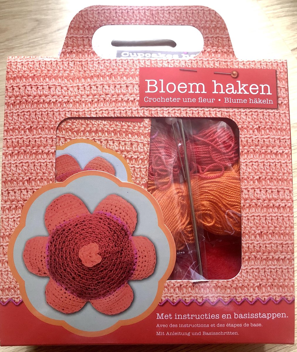 Bloem haken hobbypakket met instructies en bassisstappen Inhoud: Haakkatoen, vilt, vulling, haaknaald, naald en instructies